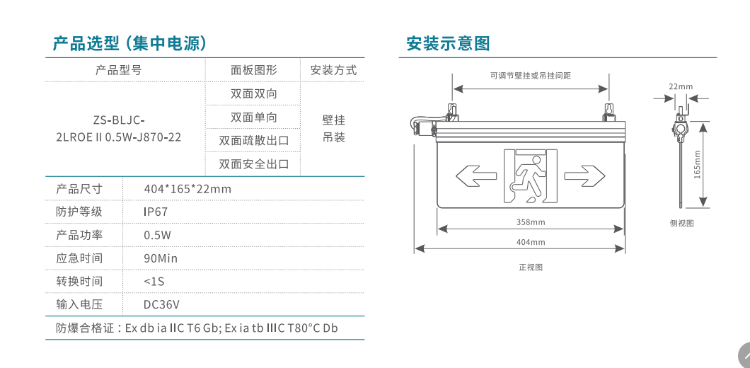 本安型防爆-單向消防應(yīng)急標(biāo)志燈 | ZS-BLJC-2LROEⅡ0.5W-J870-22 | 壁掛/吊掛