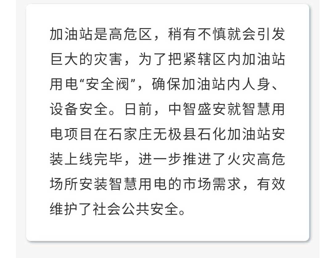 中智盛安電可信為石家莊無極縣加油站電氣安全保駕護(hù)航