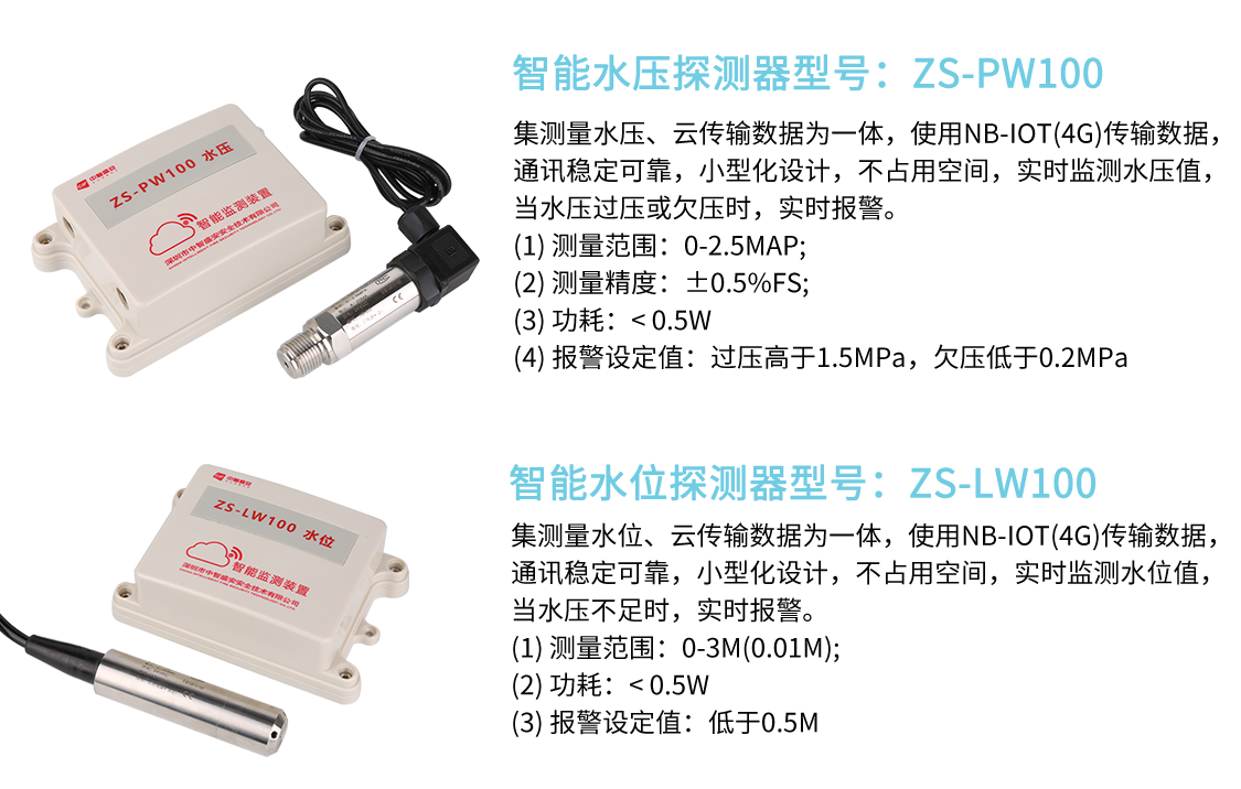 為有效應(yīng)對(duì)消防用水因水壓不足造成的“建而無(wú)水”、“建而少水”,無(wú)法有效支撐現(xiàn)場(chǎng)用水救援等現(xiàn)象,也為加緊對(duì)消防用水基礎(chǔ)設(shè)施“壞而不知”等的知曉、檢修,通過(guò)部署物聯(lián)傳感器,對(duì)消火栓水壓、噴淋系統(tǒng)水壓、水箱液位、水池液位等進(jìn)行監(jiān)測(cè)。及時(shí)發(fā)現(xiàn)消防用水系統(tǒng)的故障,盡快檢修,避免出現(xiàn)火災(zāi)無(wú)水救援等情況。